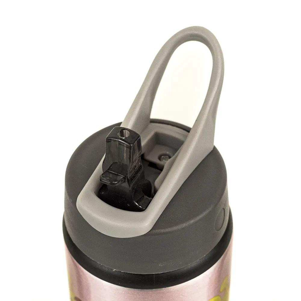 Aluminiowy bidon na wodę lub inny napój. Dziecięcy bidon ma pojemność 650 ml i doskonale mieści się nawet w kieszeni plecaka przedszkolnego. Bidon posiada pojedynczą ściankę, składany ustnik i słomkę oraz wygodny uchwyt do trzymania. Słomka w butelce jest wyciągana, dzięki czemu bez problemu można ją dokładnie umyć. Ustnik jest plastikowy. Bidon ma metaliczny lekko mieniący się połysk, przez co jest bardzo oryginalny. Nadruk wykonano metodą sublimacji, dzięki czemu jest niewyczuwalny w dotyku i bardzo trwały.