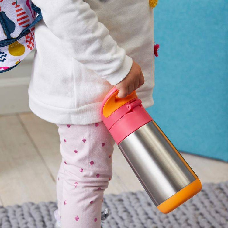 b.box butelka termiczna 350 ml Latte to praktyczne rozwiązanie do codziennego nawadniania dzieci od 12. miesiąca życia. Dzięki potrójnej warstwie izolacyjnej pomaga utrzymać chłód do 8 godzin oraz ciepło do 6 godzin, co sprawdza się w różnych warunkach pogodowych. Miękka silikonowa słomka zapewnia wygodne picie, a zamykana klapka chroni ustnik przed zabrudzeniami podczas użytkowania poza domem. System otwierania na przyciskułatwia dziecku samodzielne korzystanie z butelki.