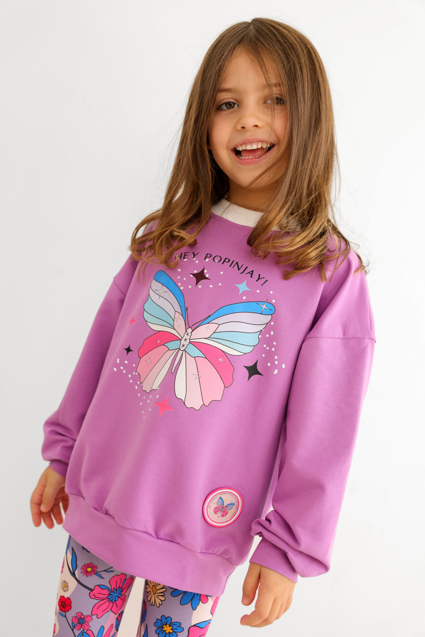 Bluza bawełniana Lazy Motyl Butterfly lawendowa Hey Popinjay