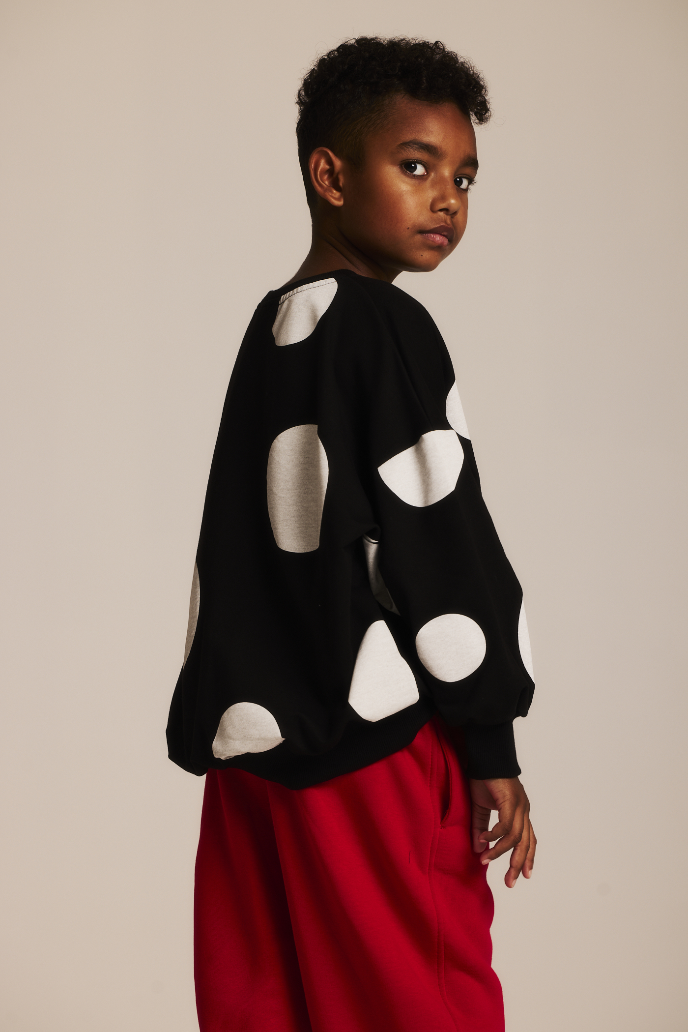 Bluza bawełniana oversize, czarna w białe, duże kropki