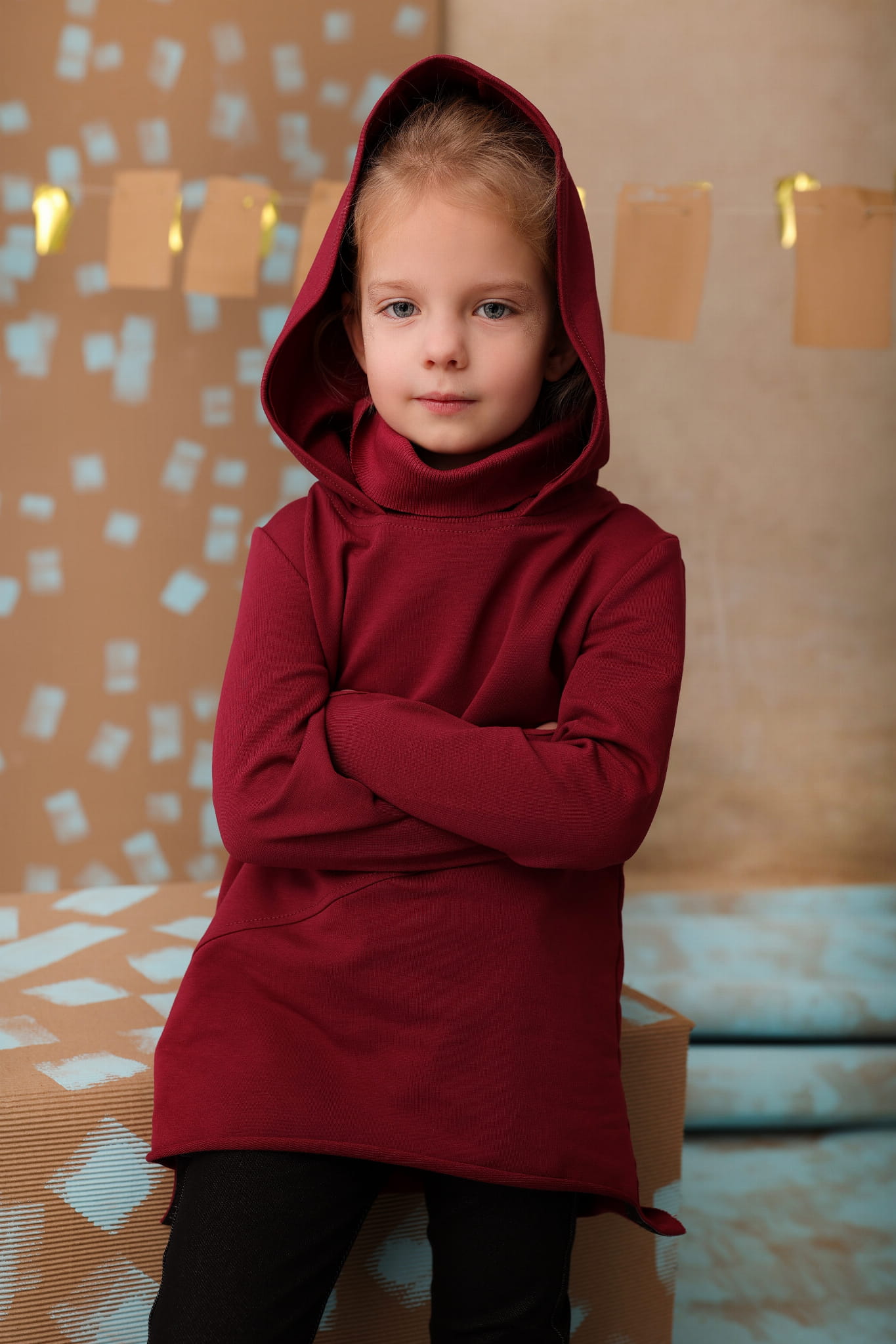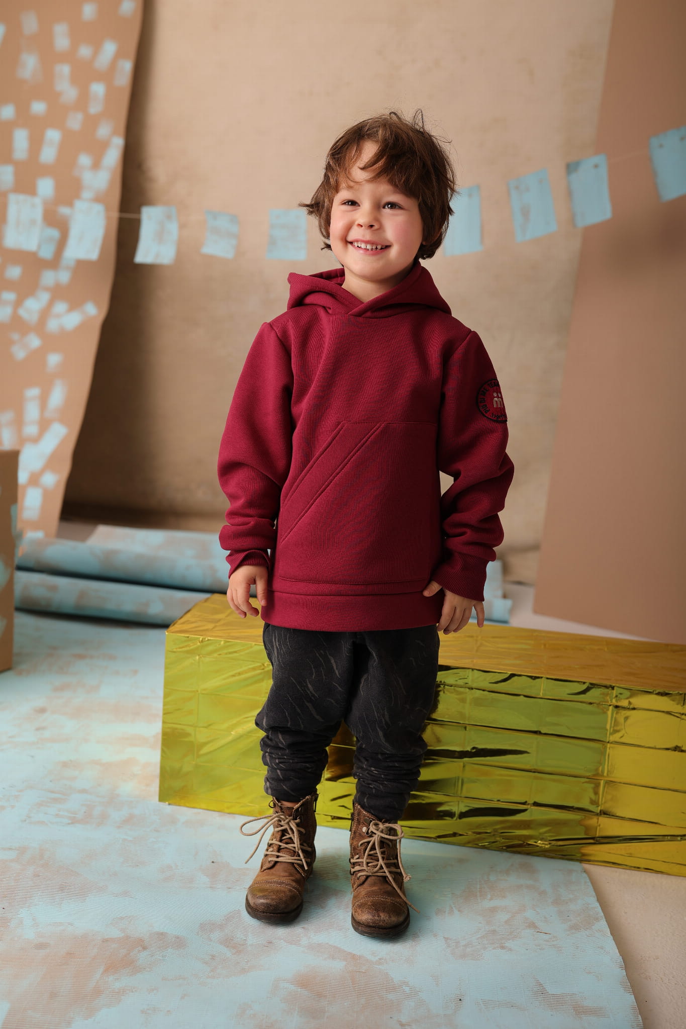 Bluza bawełniana ocieplana z kapturem burgundowa Piudime