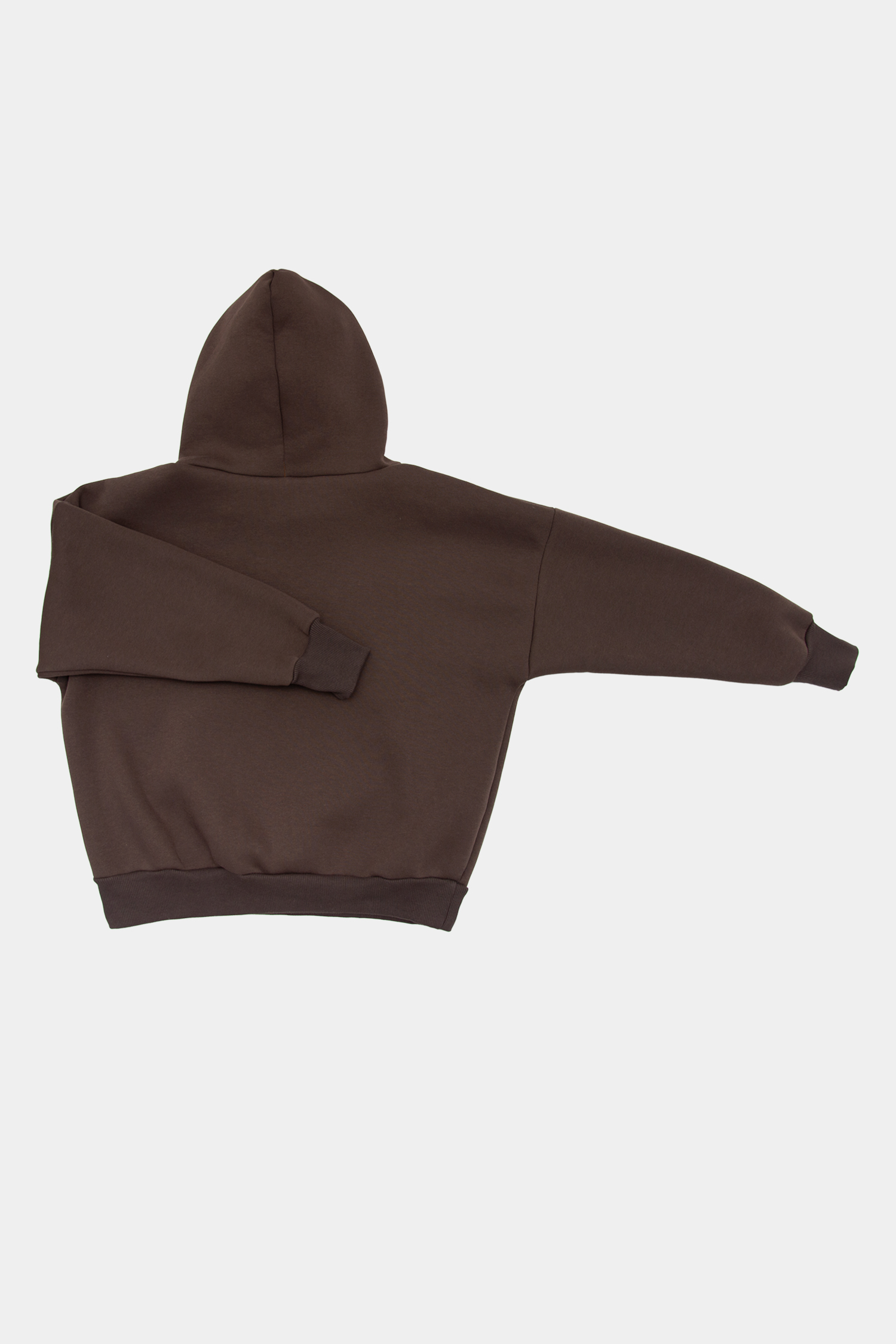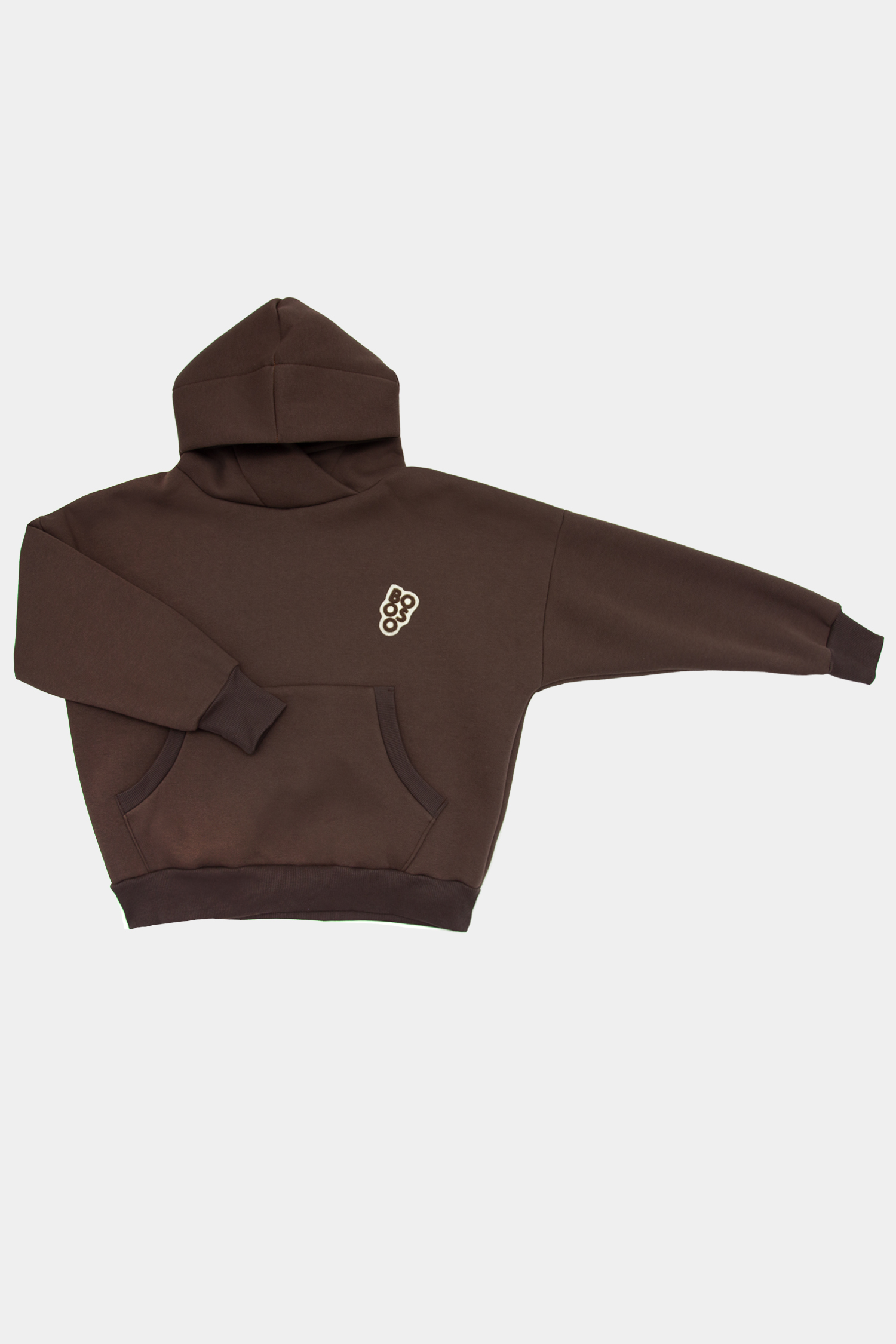 Bluza bawełniana ocieplana z kapturem kangurka brązowa 111 Booso