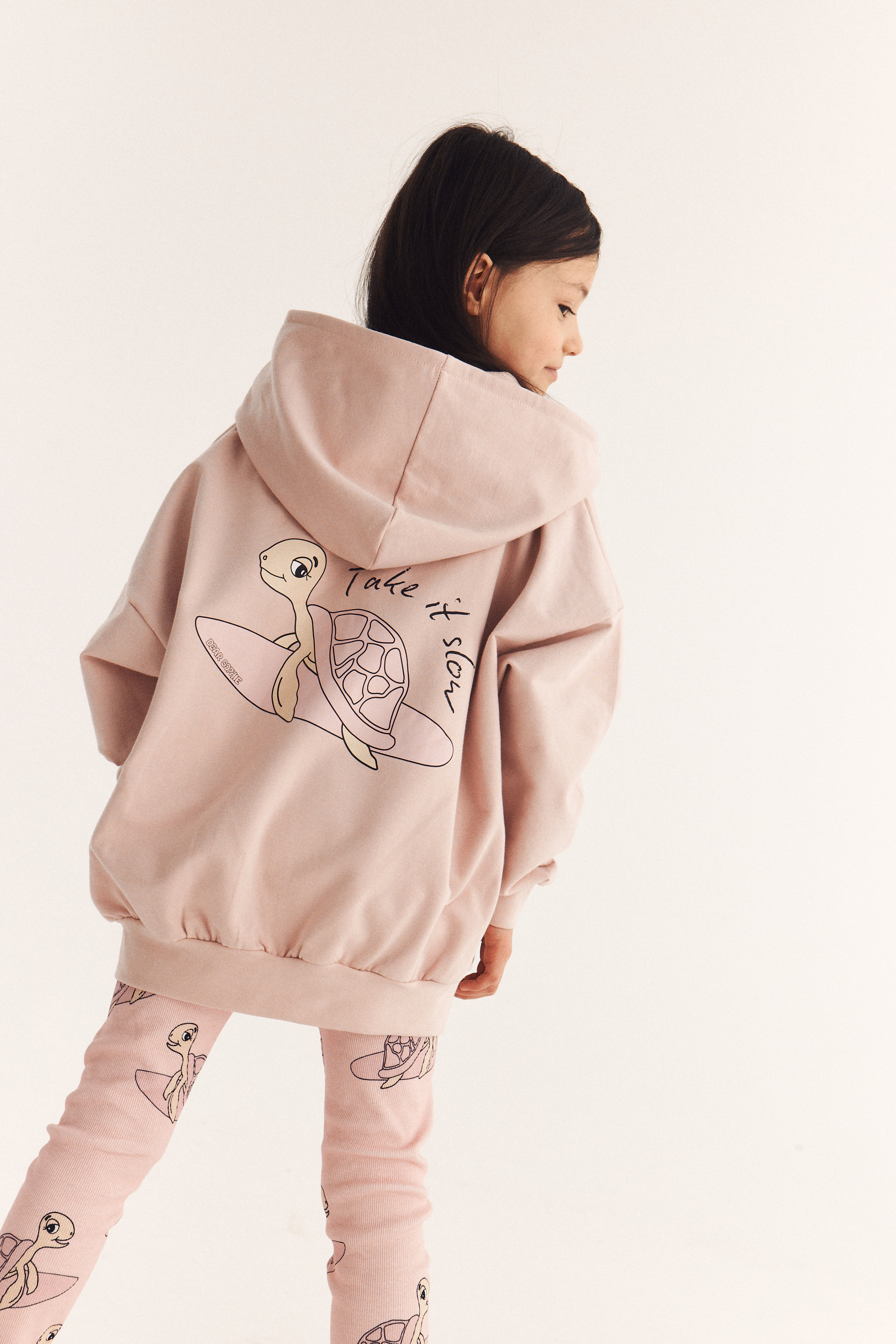 Bluza bawełniana zapinana z kapturem Żółw różowa Dear Sophie