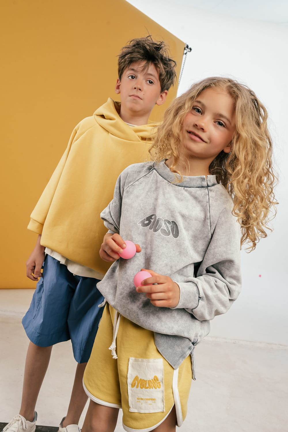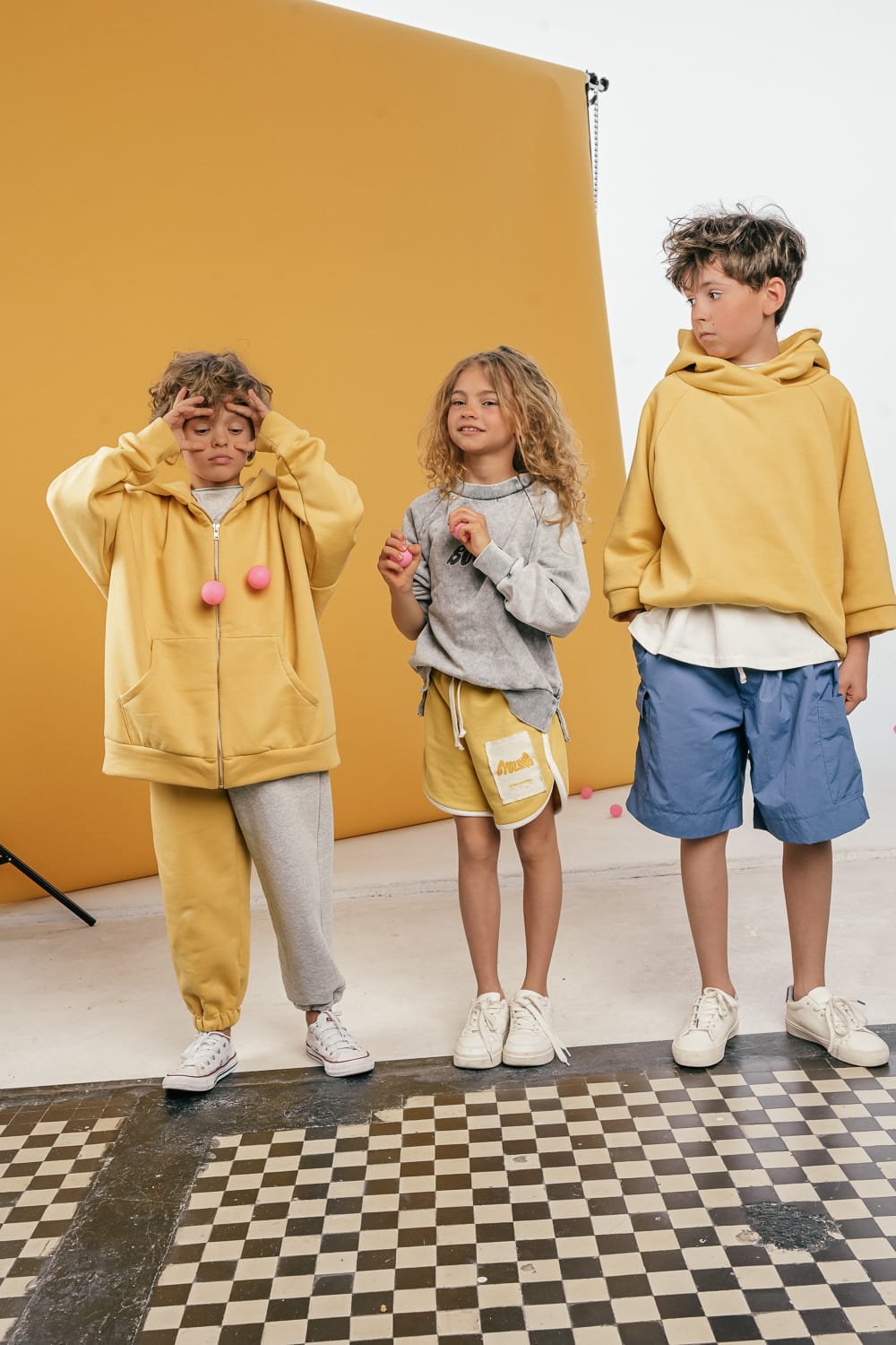 Bluza z kapturem i meszkiem niebieska z rękawkami do łokcia. By rękaw był dłuższy, warto wziąć większy rozmiar.