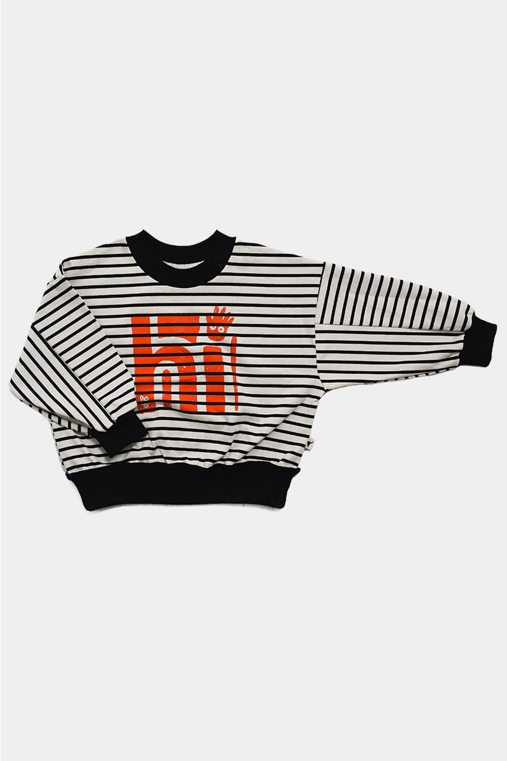 Bluza w paski czarno-białe, na przodzie napis Hi w kolorze pomarańczowym