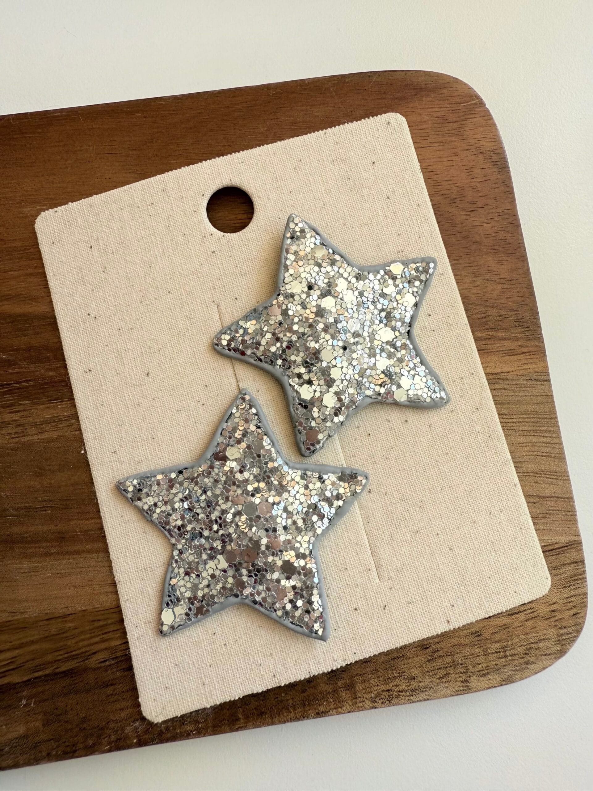 Brokatowe spinki do włosów gwiazdki srebrne 2 szt. Fig&Pear