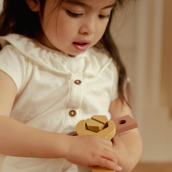 Ten zestaw to nowa odsłona kolorystyczna zestawu małego majsterkowicza, wykonany jest z drewna z certyfikatem FSC. Zawiera 20 elementów: skrzynkę majsterkowicza, "profesjonalne" narzędzia (młotek, śrubokręt, klucz) oraz mnóstwo śrubek i podkładek do tworzenia różnych instalacji. Wszystkie elementy wykonane są z drewna z certyfikatem FSC i malowane bezpiecznymi dla dzieci i środowiska farbami.