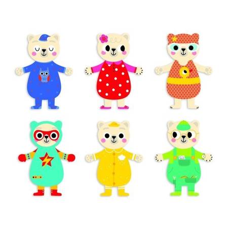 Drewniane wesołe Misie od Auzou. Zestaw 6 różnych zwierzątek do prawidłowego ułożenia przez dziecko. Zestaw uczy cierpliwości, kreatywności oraz pomaga poznać różne rodzaje zwierząt. Klocki wykonane z doskonałej jakości drewna z certyfikatem FSC. Świetny pomysł na prezent.