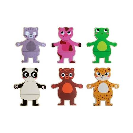 Drewniane wesołe Zwierzątka od Auzou. Zestaw 6 różnych zwierzątek do prawidłowego ułożenia przez dziecko. Zestaw uczy cierpliwości, kreatywności oraz pomaga poznać różne rodzaje zwierząt. Klocki wykonane z doskonałej jakości drewna z certyfikatem FSC. Świetny pomysł na prezent.