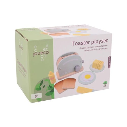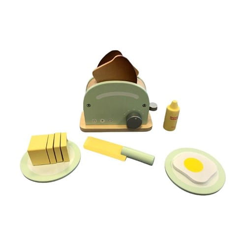 Drewniany toster w pastelowych kolorach do zabawy przyda się podczas przygotowywania smacznego śniadania. Pokrętła i mechanizm tostera urealni dziecięcą zabawę. Toster zawiera 2 wypieczone tosty, ser w kawałku i plasterkach, miód oraz jajecznicę. W zestawie są 2 talerze i nóż - wszystko w drewna! Długa zabawa jest gwarantowana!