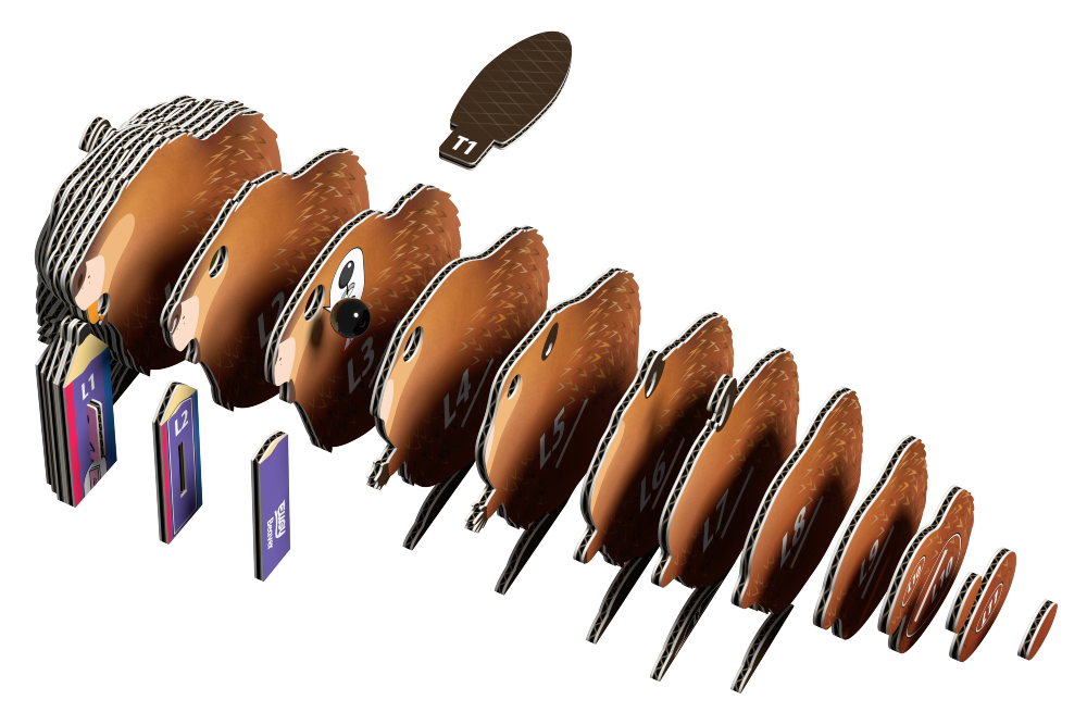 - Edukacyjna układanka 3D do samodzielnego złożenia bobra.