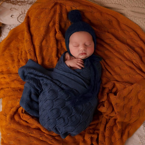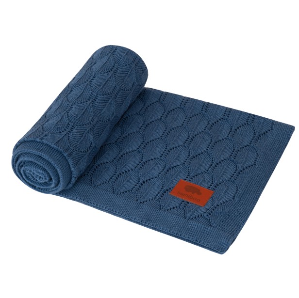 Kocyk bambusowy ażurowy granatowy 80x100 Samiboo