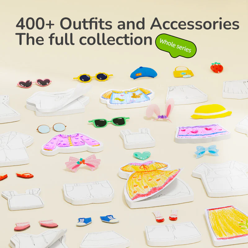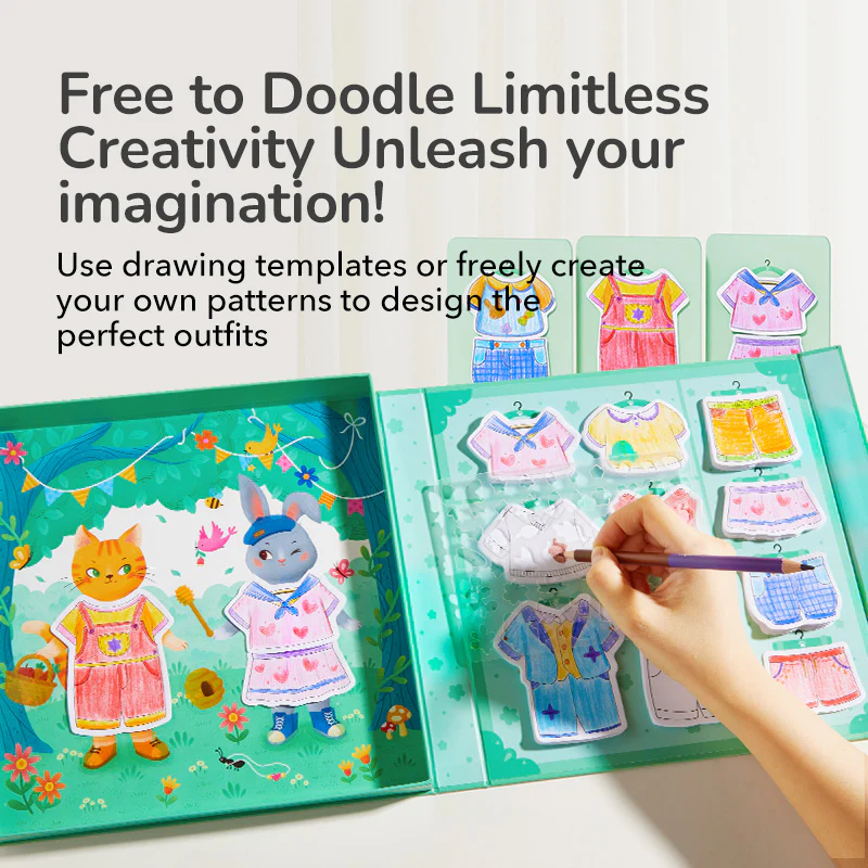 Kolorowanka przebieranka pozwala na kreowanie pięknych strojów za pomocą karteczek post-it. Mali projektanci i projektantki dzięki temu mogą tworzyć dzieła, których nie powstydziłyby się paryskie wybiegi mody. Tworząc wspólnie piękne ubiory, możemy lepiej poznać dziecko i jego gust. Kreowanie postaci tak, jak podpowiada to dziecięca wyobraźnia, to wyjątkowy i cenny proces, poprzez który pozwolimy dziecku wyrazić siebie.