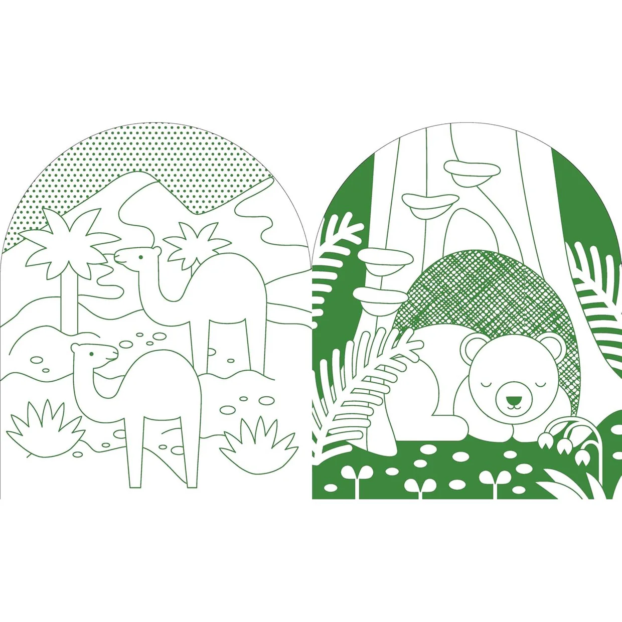 Wybierz się w niezwykłą podróż do krainy zwierząt! Pokoloruj niesamowite sceny z naturalnych środowisk małp, wielbłądów, wielorybów, czy niedźwiedzi. Następnie udekoruj je ponad 100 naklejkami o tematyce zwierzęcej.