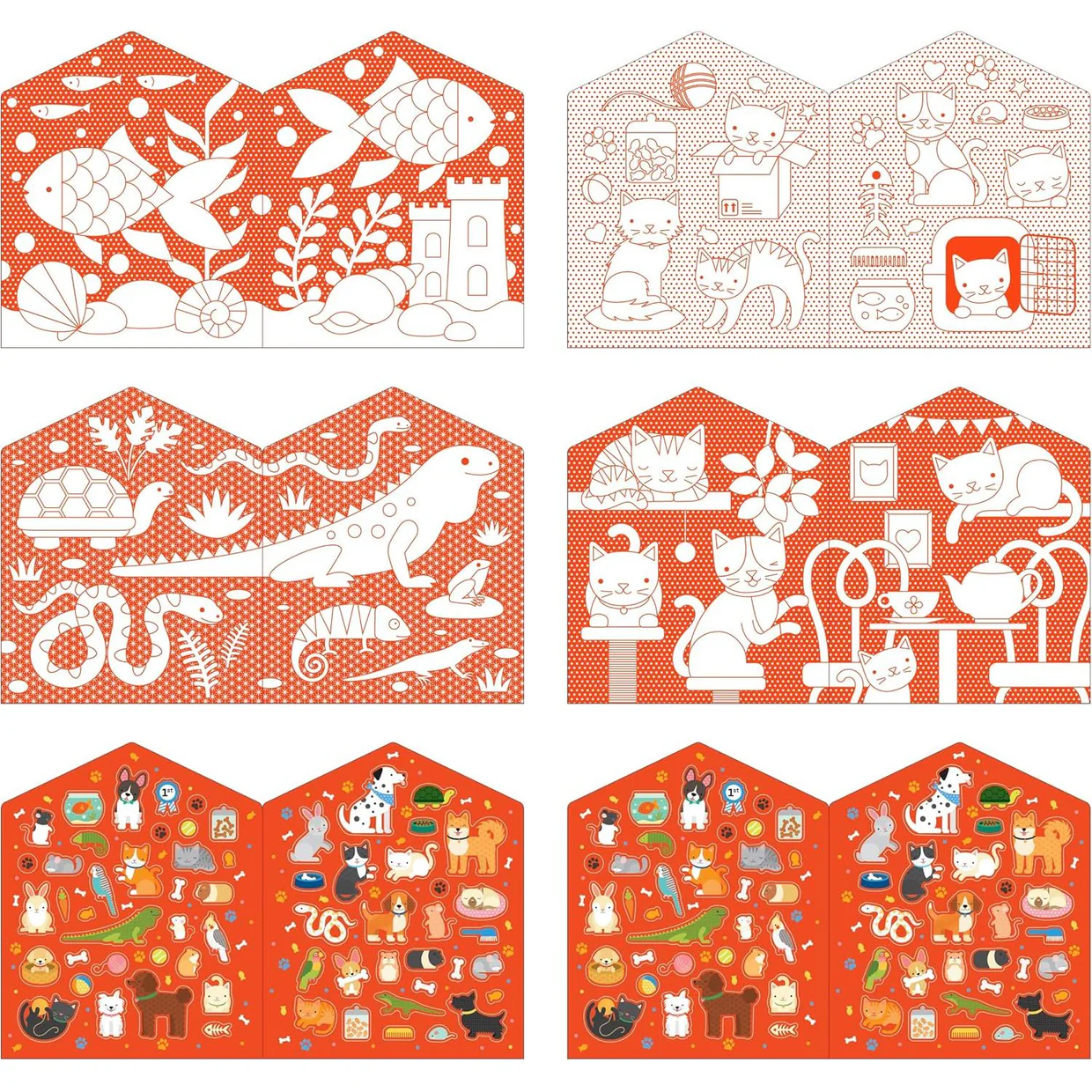 Wybierz się w niezwykłą podróż do krainy zwierzaków domowych! Pokoloruj radosne sceny z przyjaznymi, zwierzątkami domowymi, począwszy od rybek, przez żółwie, na psach i kotach kończąc. Następnie udekoruj je ponad 100 naklejkami o tematyce fauny.