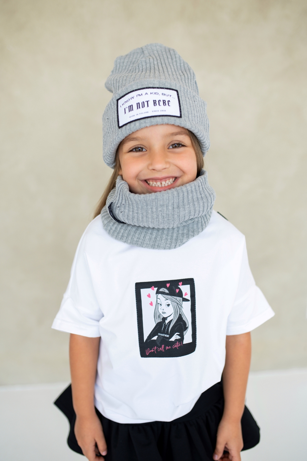 Komin bawełniany gruby prążek I know i'm a kid szara I'm not bebe