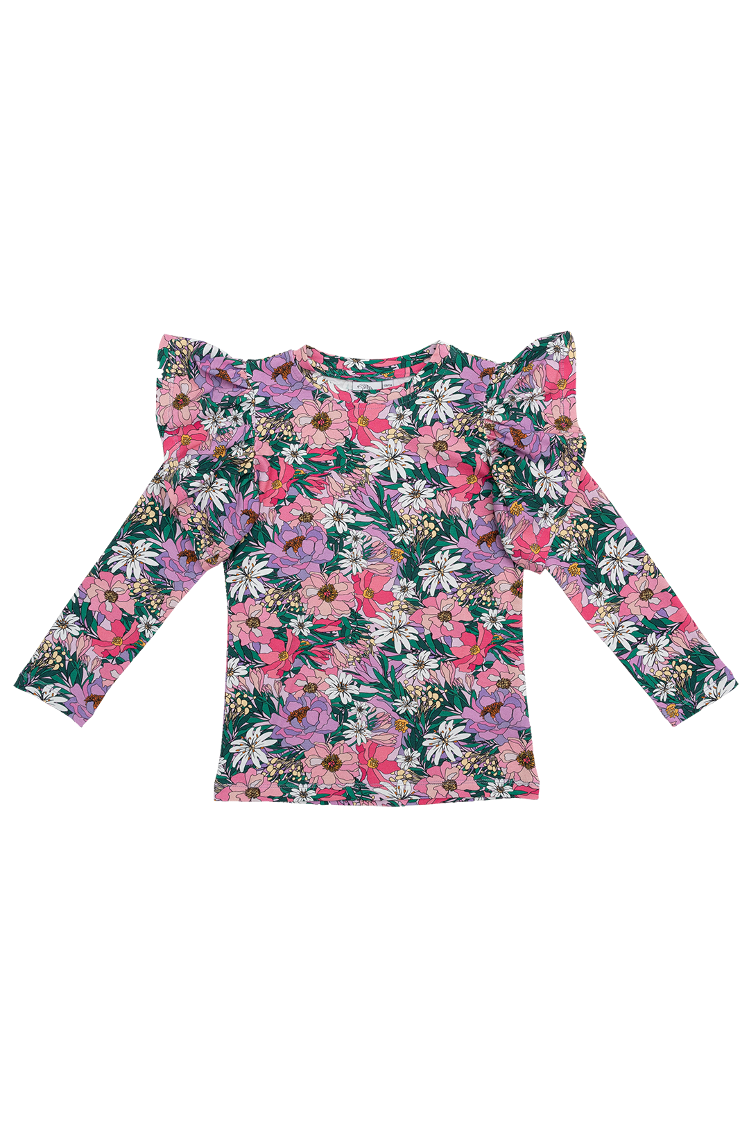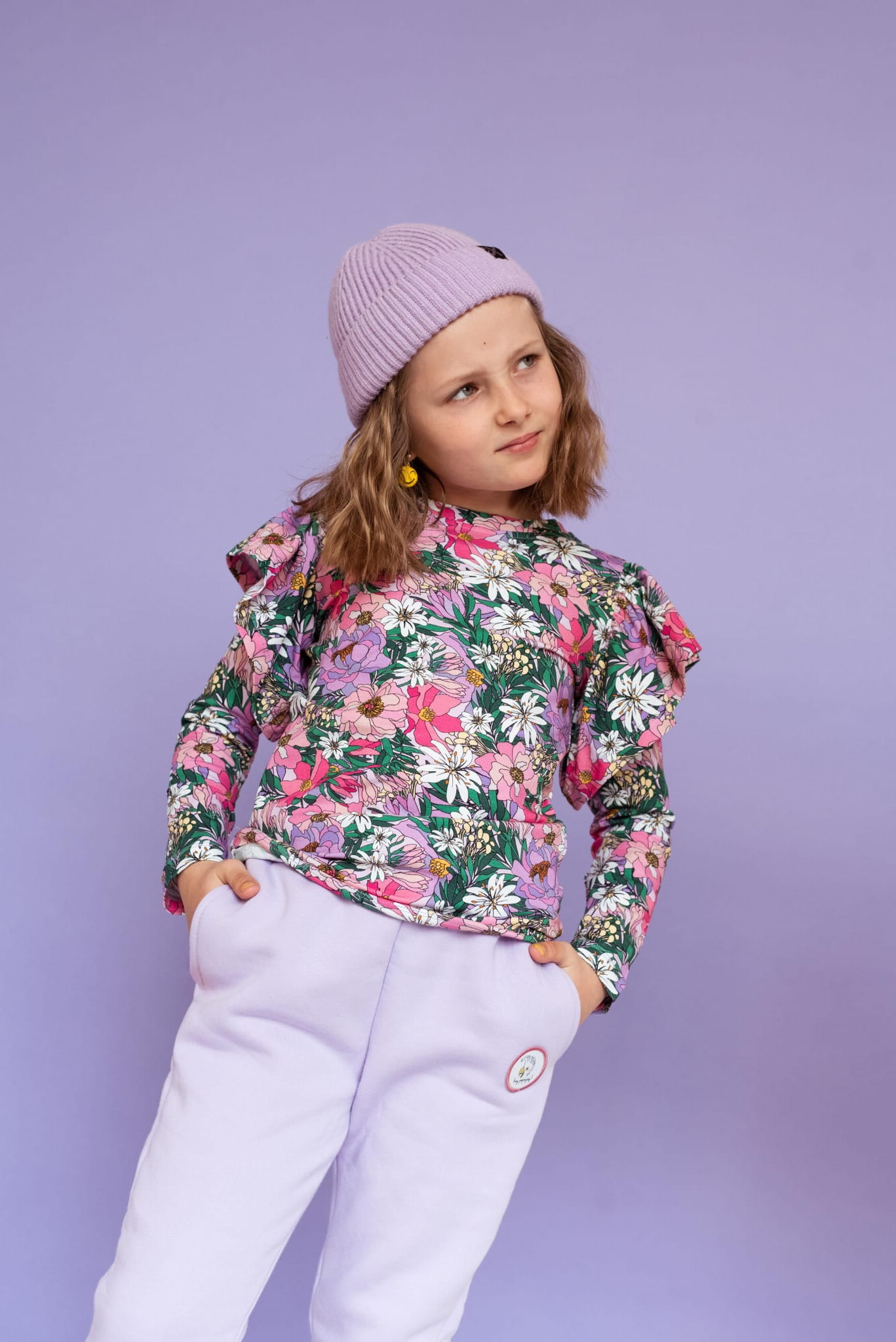 Koszulka bawełniana z długim rękawem i falbanką Hermi Florina Hey Popinjay