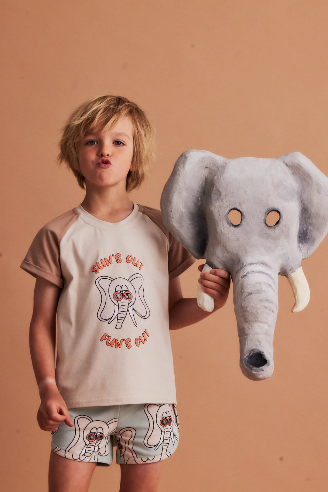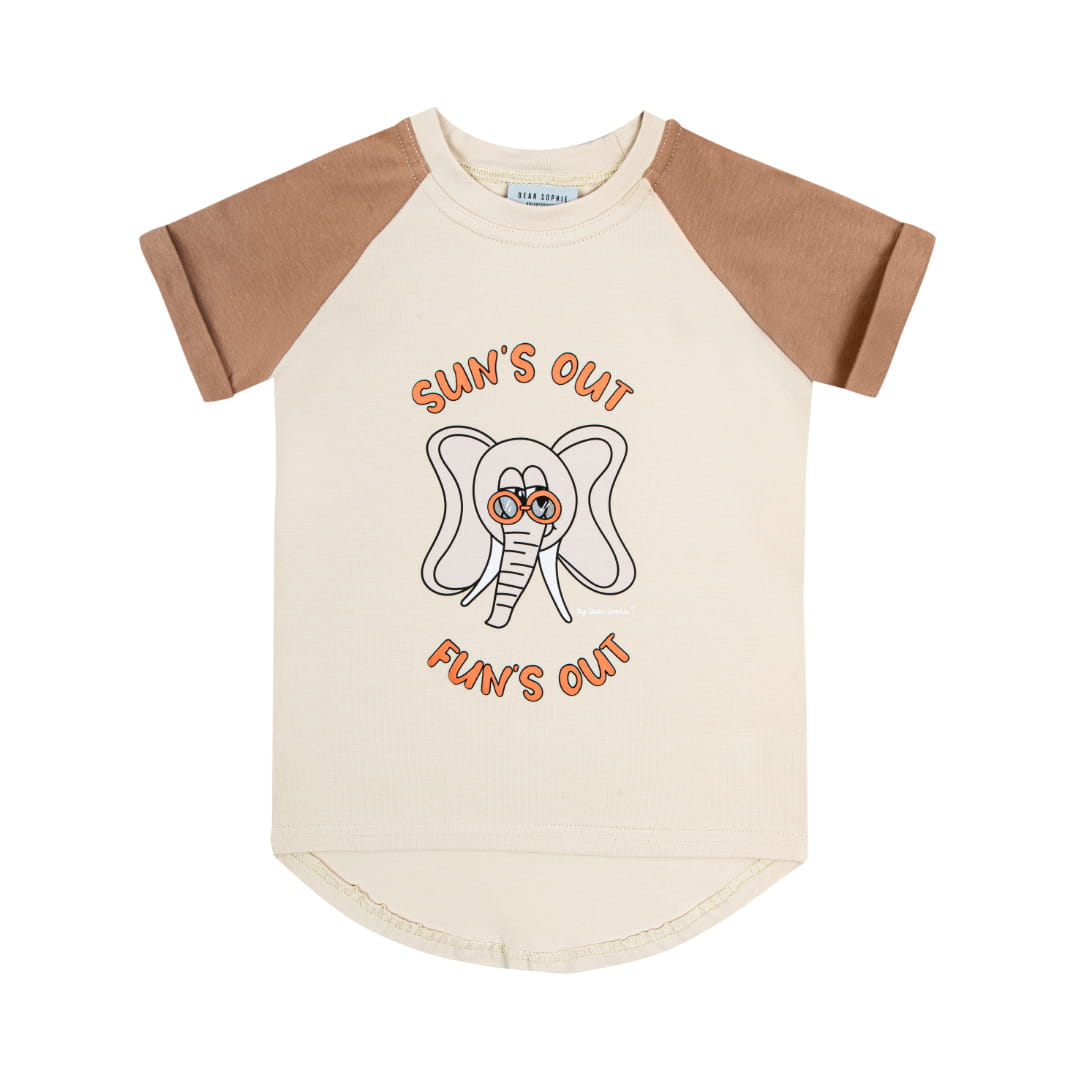 Koszulka z krótkim rękawem bawełniana Słonik beżowy Dear Sophie