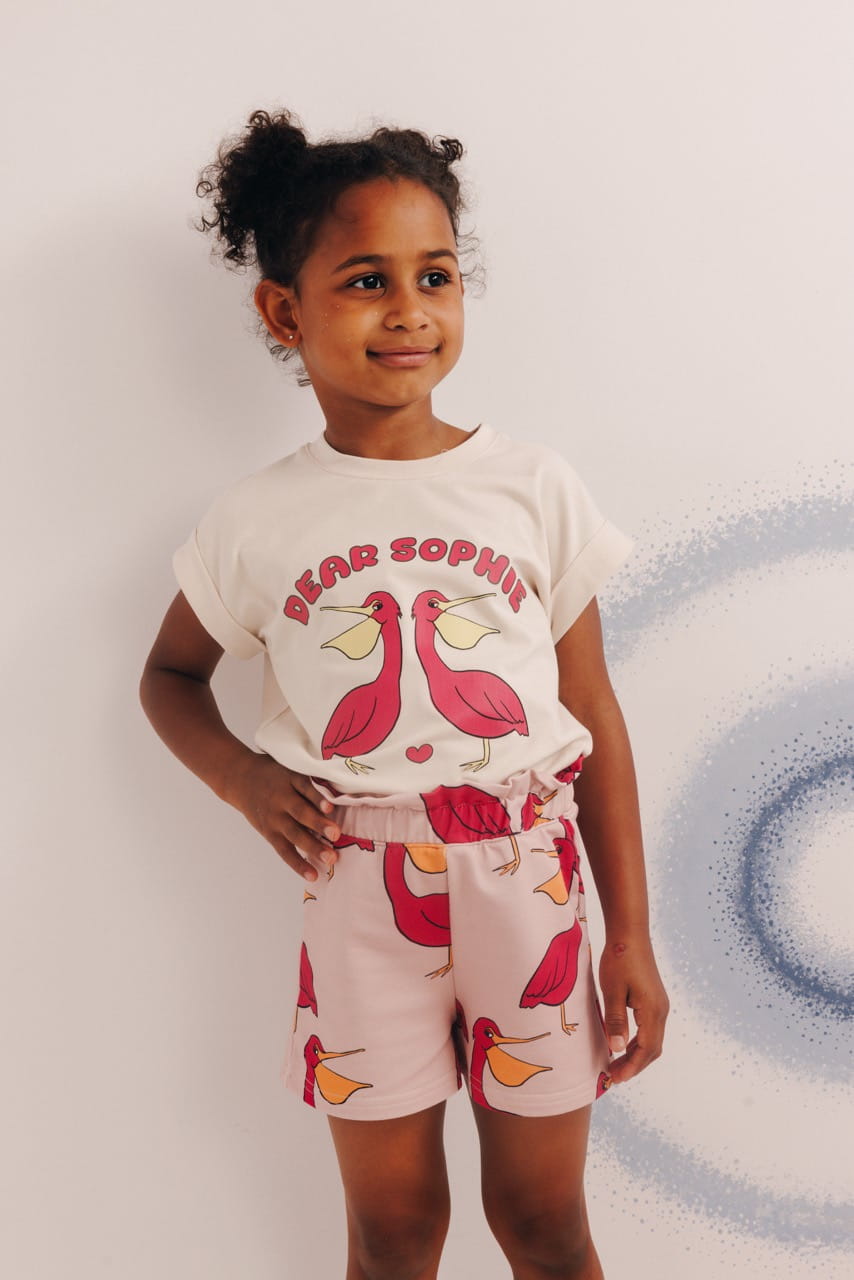 Koszulka z krótkim rękawem bawełniana ecru Pelikan różowy Dear Sophie