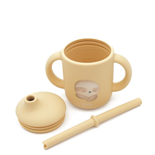 Kubek silikonowy z rurka dla dzieci Leniwiec beżowy Sassi