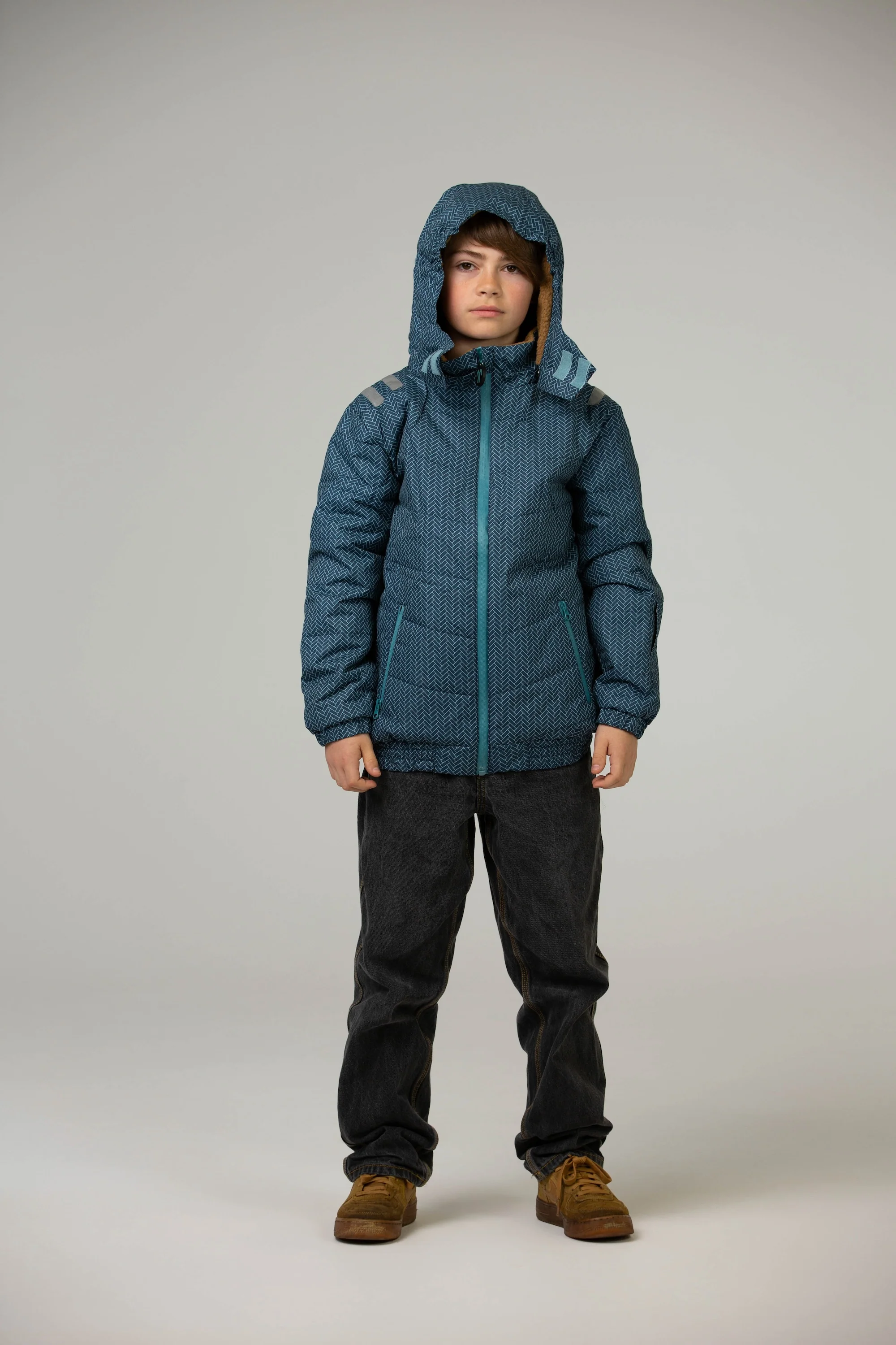 Zimowa kurtka Ducksday zapewnia Twoim dzieciom ciepło nawet do −25∘C* i jest obowiązkowym elementem garderoby na chłodne dni w szkole, w lesie lub na stoku! Miękkie detale ze sztucznego sherpy w odpinanym kapturze i kołnierzu tworzą przytulny, zimowy nastrój. Elastyczna talia i mankiety sprawiają, że śnieg, deszcz i wiatr nie mają szans się dostać do środka. Kurtka jest niezbędna na stoku dzięki poręcznej kieszeni wewnętrznej, kieszeni na karnet narciarski oraz klapie sztormowej (osłonie zamka).