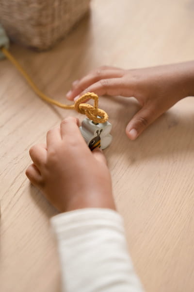 Nawlekanka Little Farm od Little Dutch. Zestaw składający się z dwóch sznureczków i 11 drewnianych elementów z motywami Little Farm, które dziecko może nawlekać na sznureczki. Zabawka ćwiczy motorykę małą, koordynację i cierpliwość. Świetna zabawa gwarantowana!