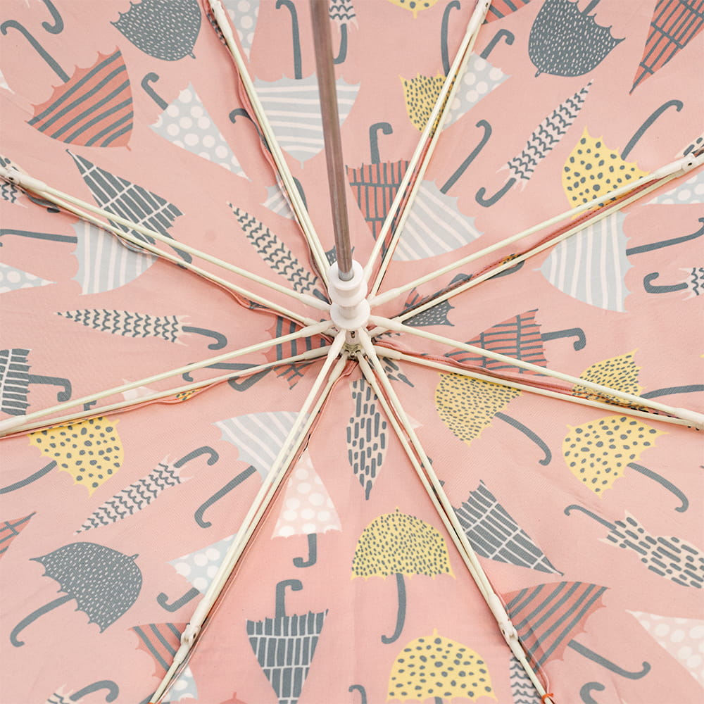 Dziecięca parasolka typu laska solidnie wykończona. Proste i szybkie otwieranie. Wysoka odporność na podmuchy wiatru. Stelaż wykonany z włókna szklanego, drążek stalowy. Wykończona okrągłymi powiększonymi końcówkami w celu ochrony przed draśnięciami, szpic również okrągły. Możliwość podpisania na pasku zapinającym.