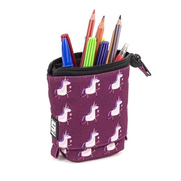 Dno piórnika jest usztywniane dzięki temu stoi stabilnie, nawet gdy jest wypełniony.