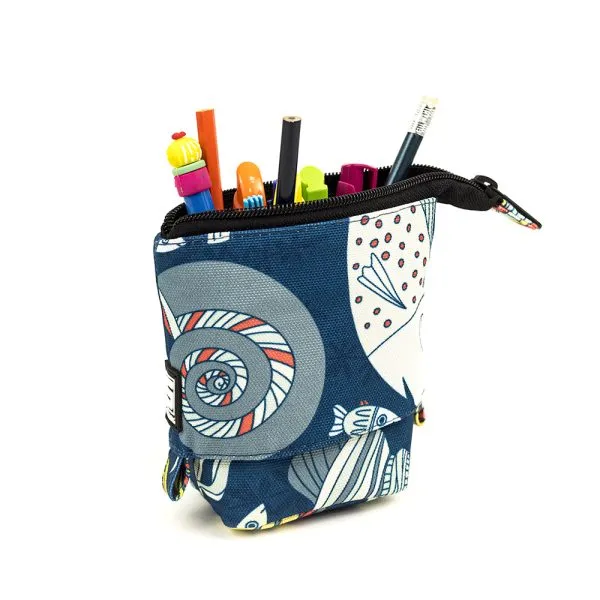 Dno piórnika jest usztywniane dzięki temu stoi stabilnie, nawet gdy jest wypełniony.