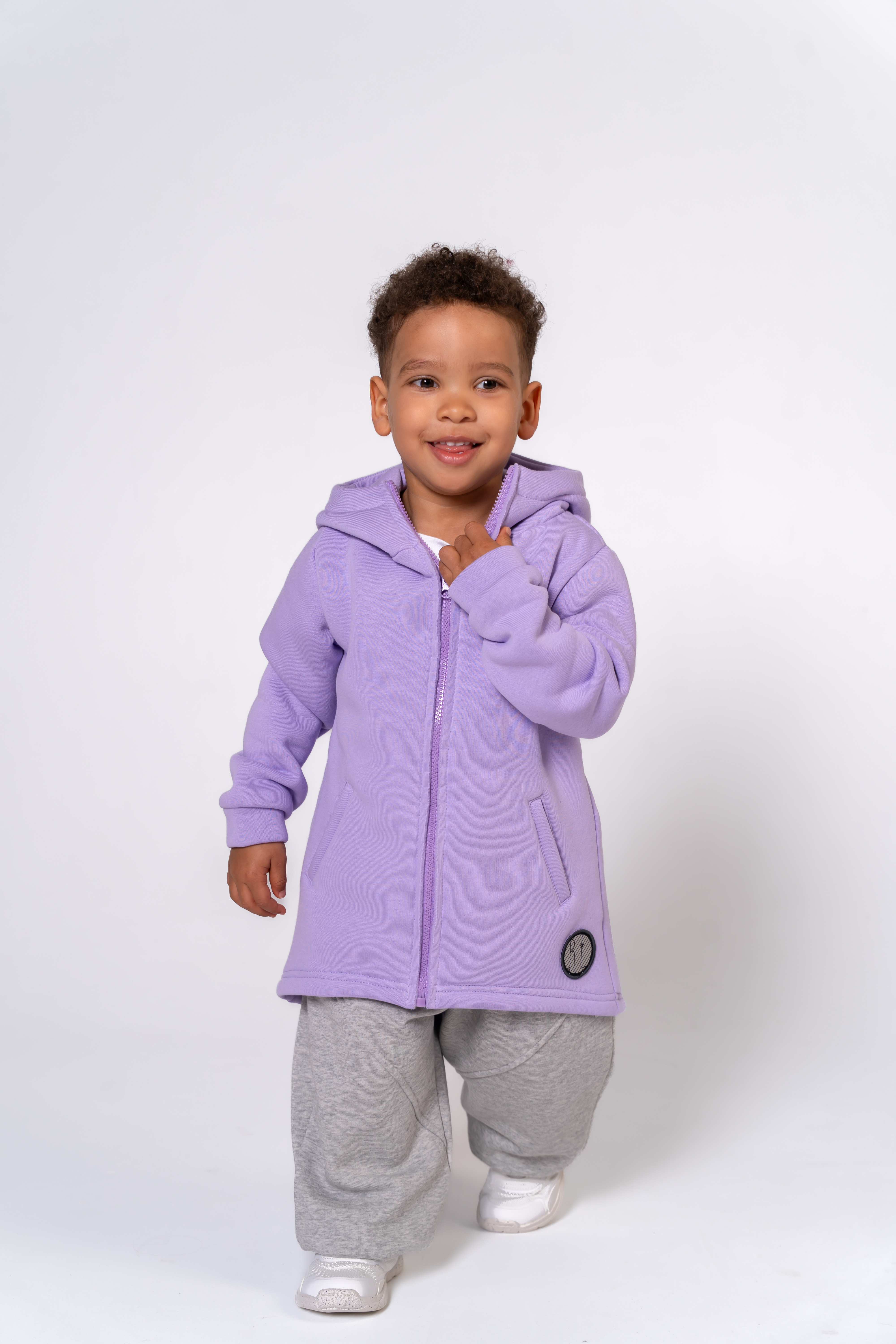 Płaszczyk z kapturem z grubej, wyjątkowo miękkiej i mięsistej, wysokogatunkowej dzianiny. Niezwykle praktyczny i wygodny. Posłuży Wam na co dzień. Ogrzeje, osłoni od wiatru, z łatwością ubierzecie pod kaptur również czapkę w chłodniejsze dni. Ciepły z podwyższonym kołnierzem, który można zapiąć „na szczelno”, przedłużony tył. Rozpinany na zamek, posiada kieszenie. Tkana naszywka z logo R&L.