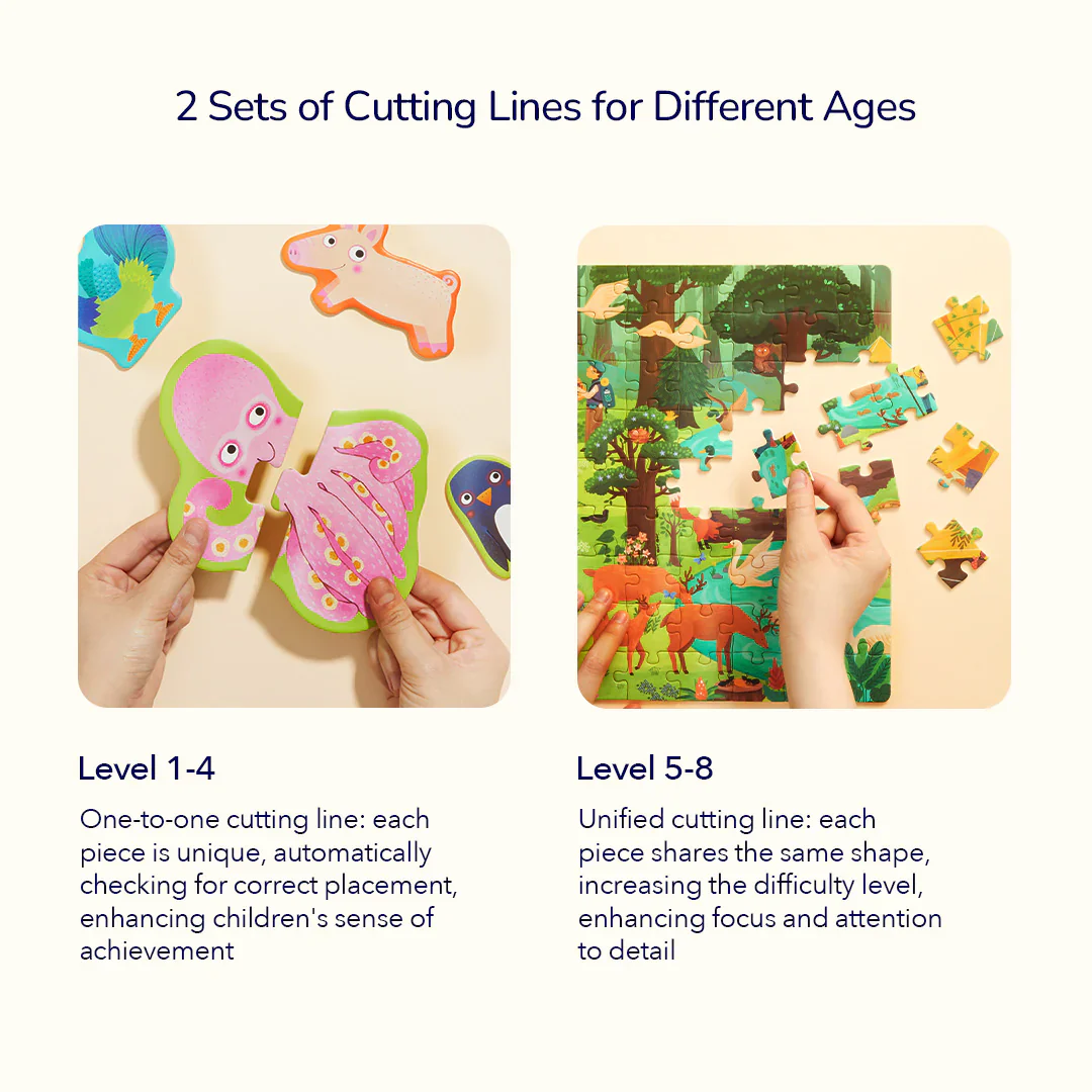 Każda układanka ma inny poziom trudności, co pozwala dziecku rozwijać się krok po kroku i nabierać pewności siebie.