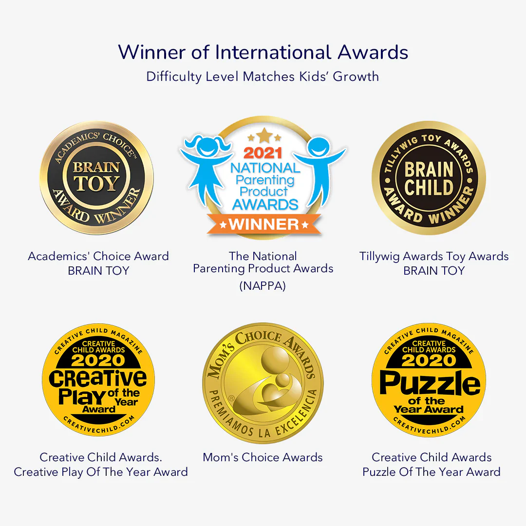W zestawie znajduje się również certyfikat, który rodzic może wręczyć jako nagrodę za ułożenie puzzli – mały gest, który wzmacnia pewność siebie i buduje poczucie dumy.