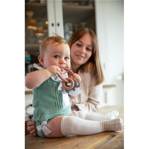 Wspaniały klasyk w nowej odsłonie, gryzak z silikonu i drewna bukowego to wyjątkowo lekka ulubiona zabawka niemowląt.