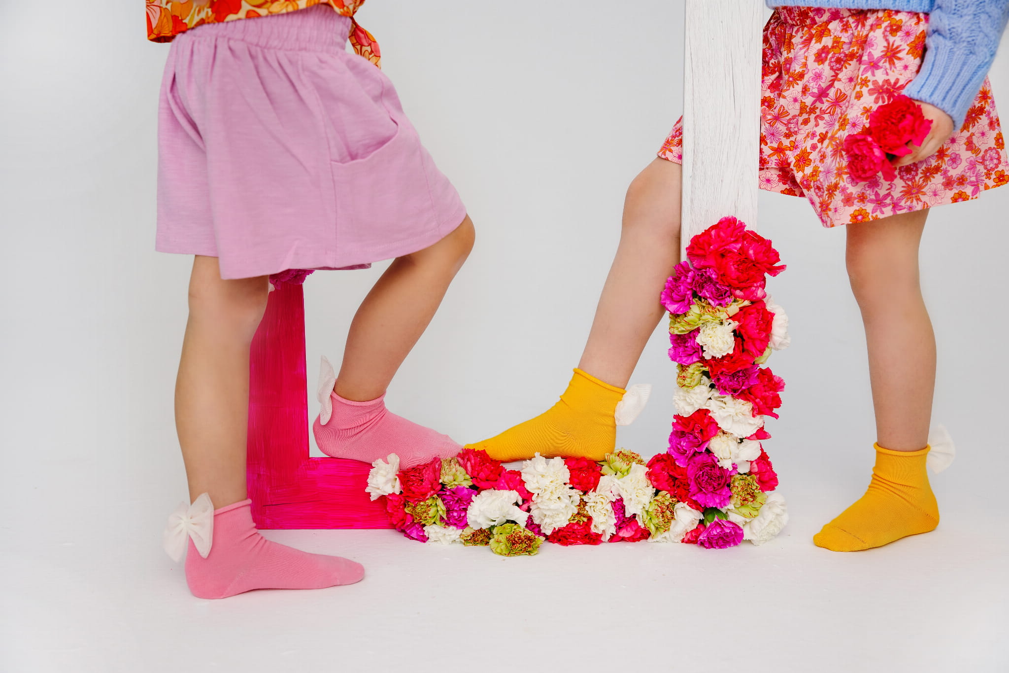 Flora to kolekcja pięciu wiosennych skarpetek w wyrazistych kolorach uzupełnionych subtelną, białą kokardką z tiulu.