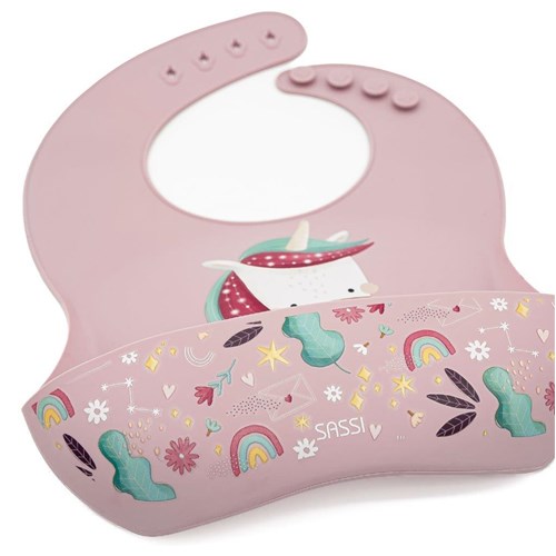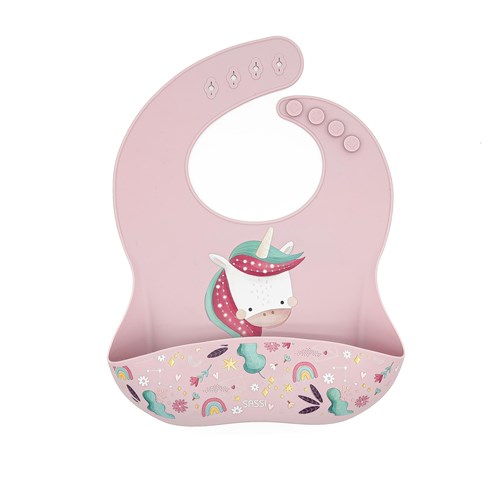 Silikonowy śliniak z kieszonką Jednorożec SASSI