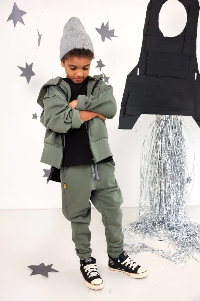 Spodnie bawełniane, ocieplane zielone Piudime