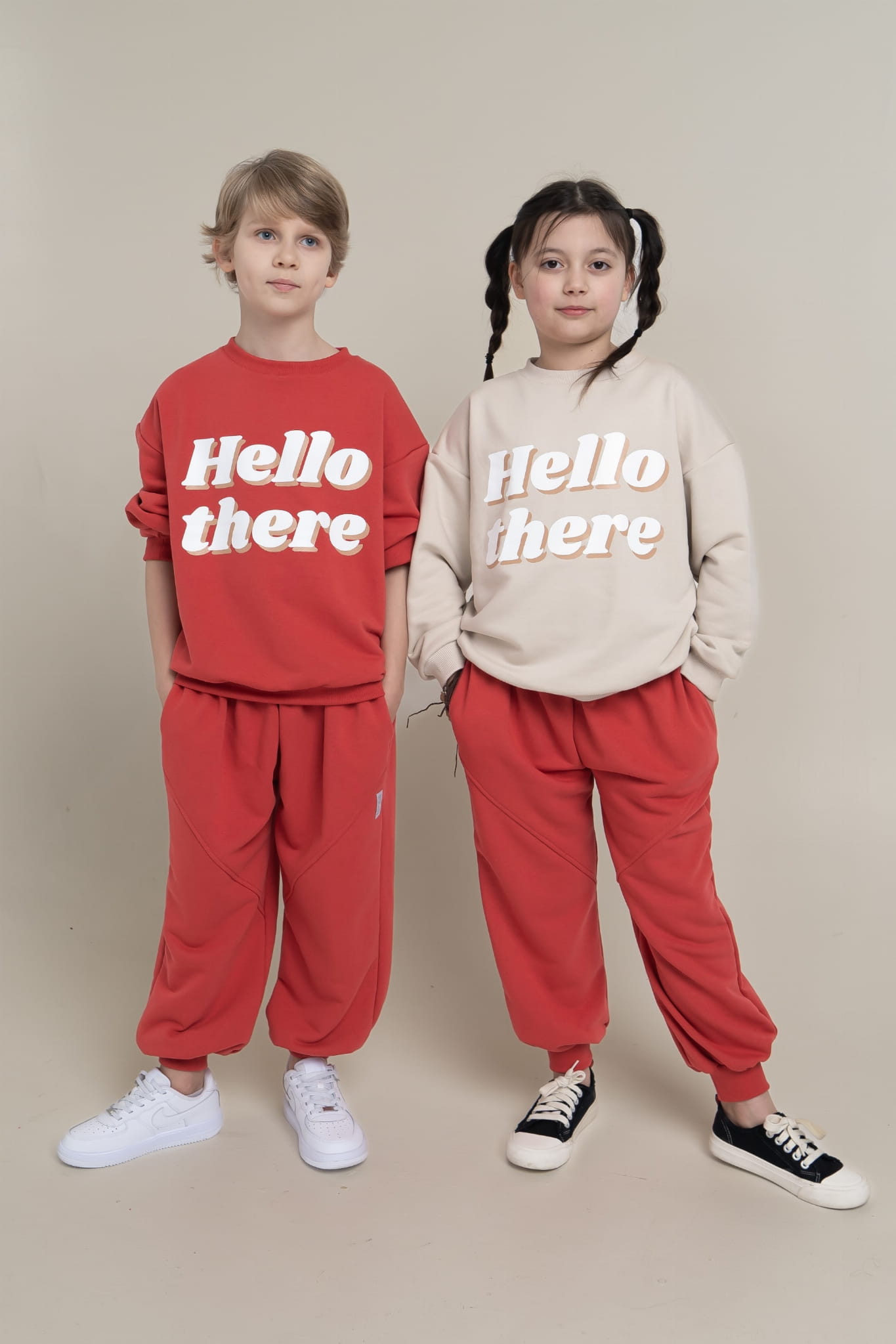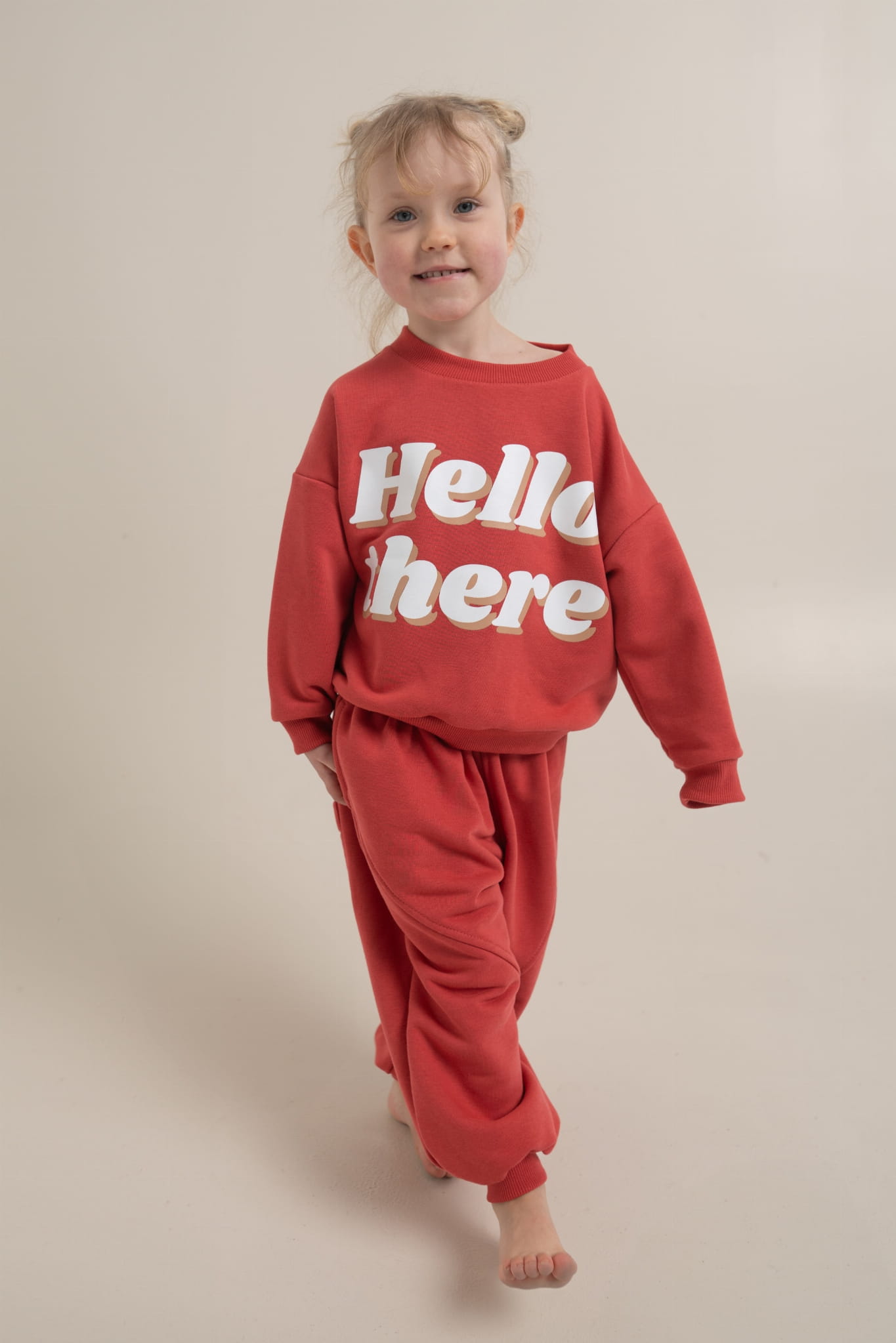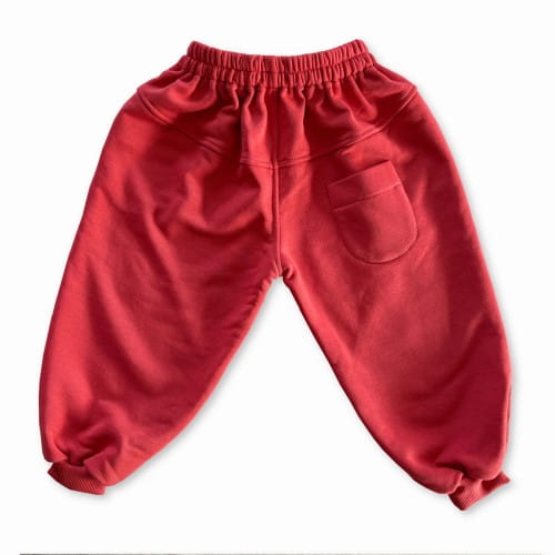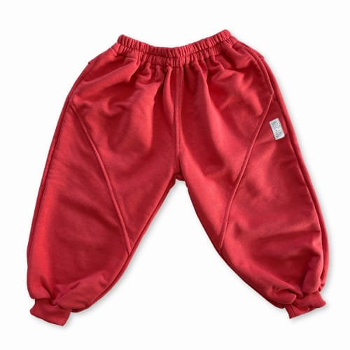 Średniej grubości spodnie w pięknym nasyconym, ale jednocześnie niekrzykliwym kolorze cynober, z wyjątkowo miękkiej i przyjemnej dzianiny. Luźny i obszerny krój z szerokimi nogawkami sprawia, że są niezwykle wygodne. W pasie marszczona guma. Spodnie posiadają kieszenie oraz ozdobne przeszycia z przodu na nogawkach. Dodatkowo z tyłu ozdobna kieszonka. Nogawki wykończone ściągaczami, co także zapewni wygodę ich ubierania. Naszywka z logo marki na nogawce.