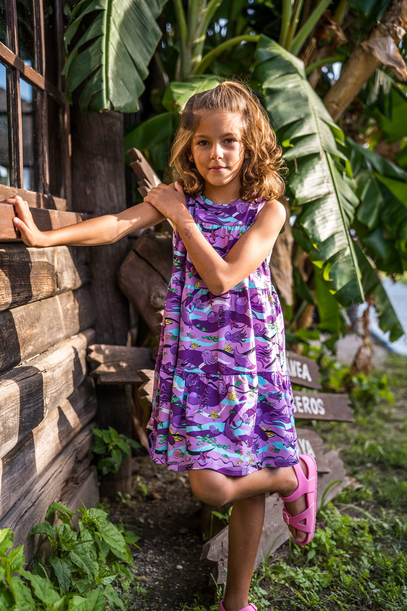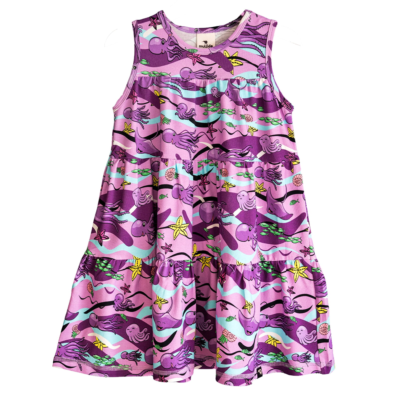 Sukienka bawełniana letnia A-line Ośmiornica fioletowa Mullido