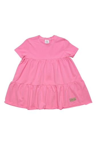 Sukienka z falbaną w wersji na krótki rękaw wykonana z cieńszej dzianiny.