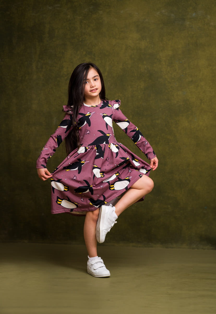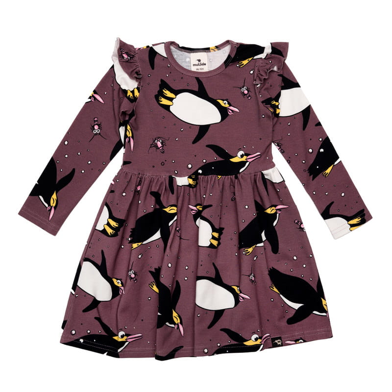 Sukienka bawełniana pingwin Hoiho wrzosowa Mullido