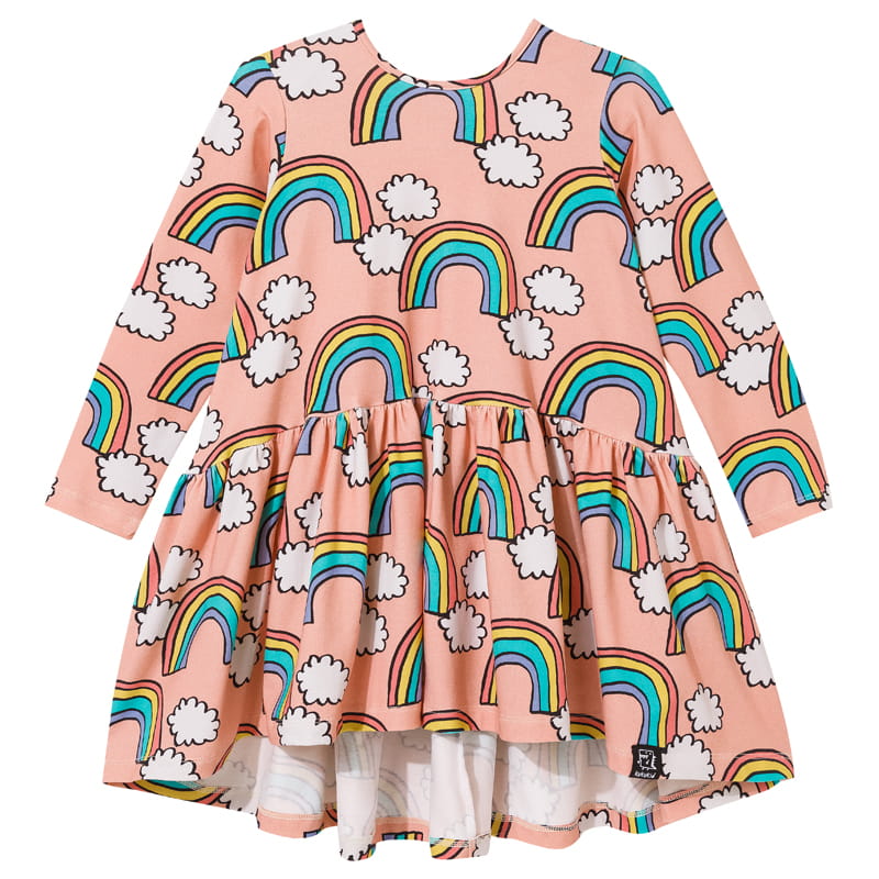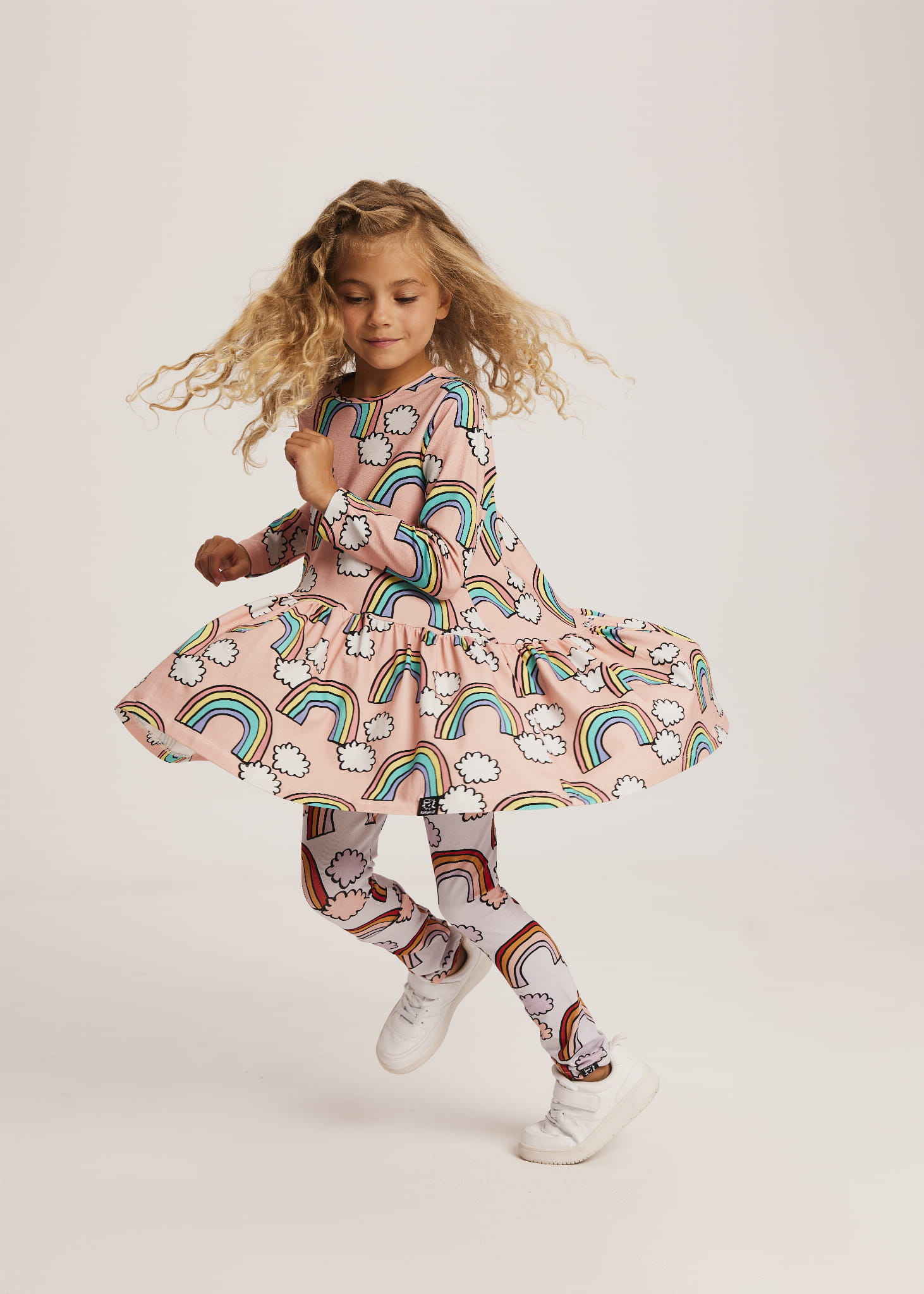 Sukienka bawełniana tańcząca Tęcza różowa Kukukid