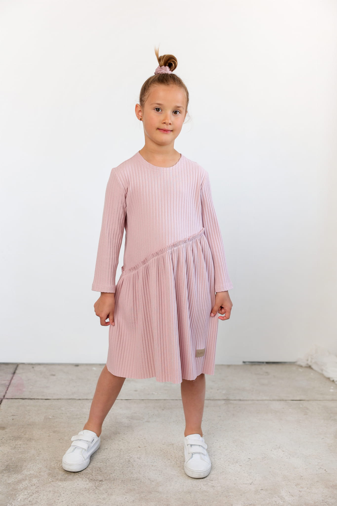Sukienka z materiału harmony - gruby prążek. Odcinana pod kątem. Rękaw raczej 3/4.