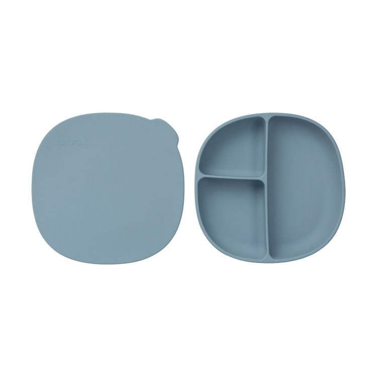 Błękitny talerz silikonowy dla dzieci z przyssawką i pokrywką od b.box!